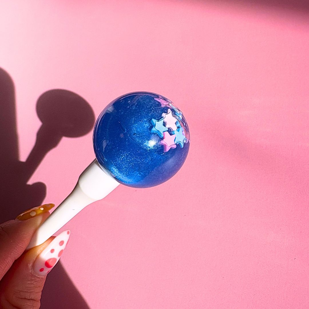 Dive into glossy perfection with Ocean Star — a deep ocean-blue jelly lip gloss in a lollipop tube, packed with hydrating shine, sparkly star charms, and a refreshing lemonade scent. It’s juicy, playful, and mermaid-approved! 🐚✨