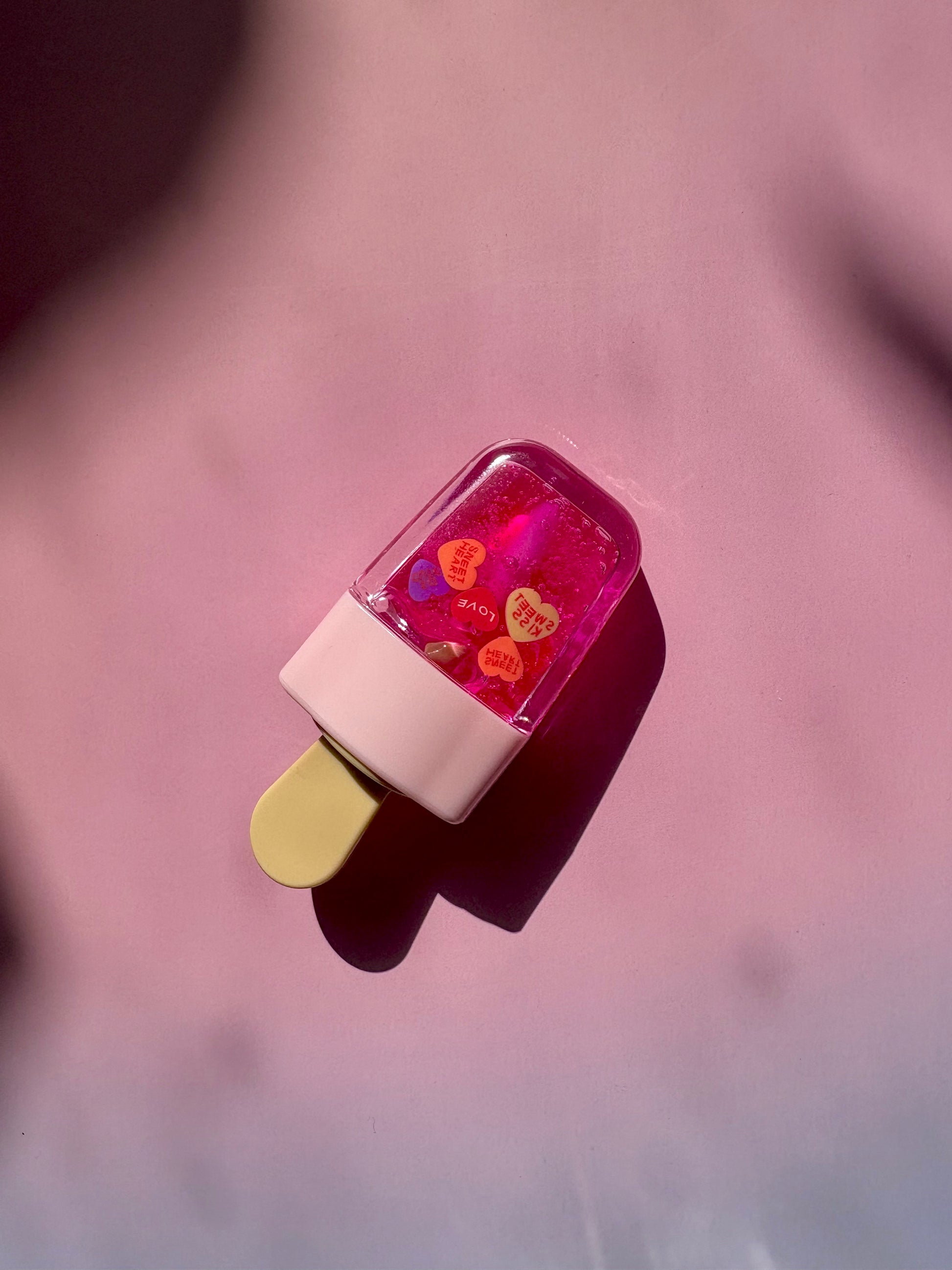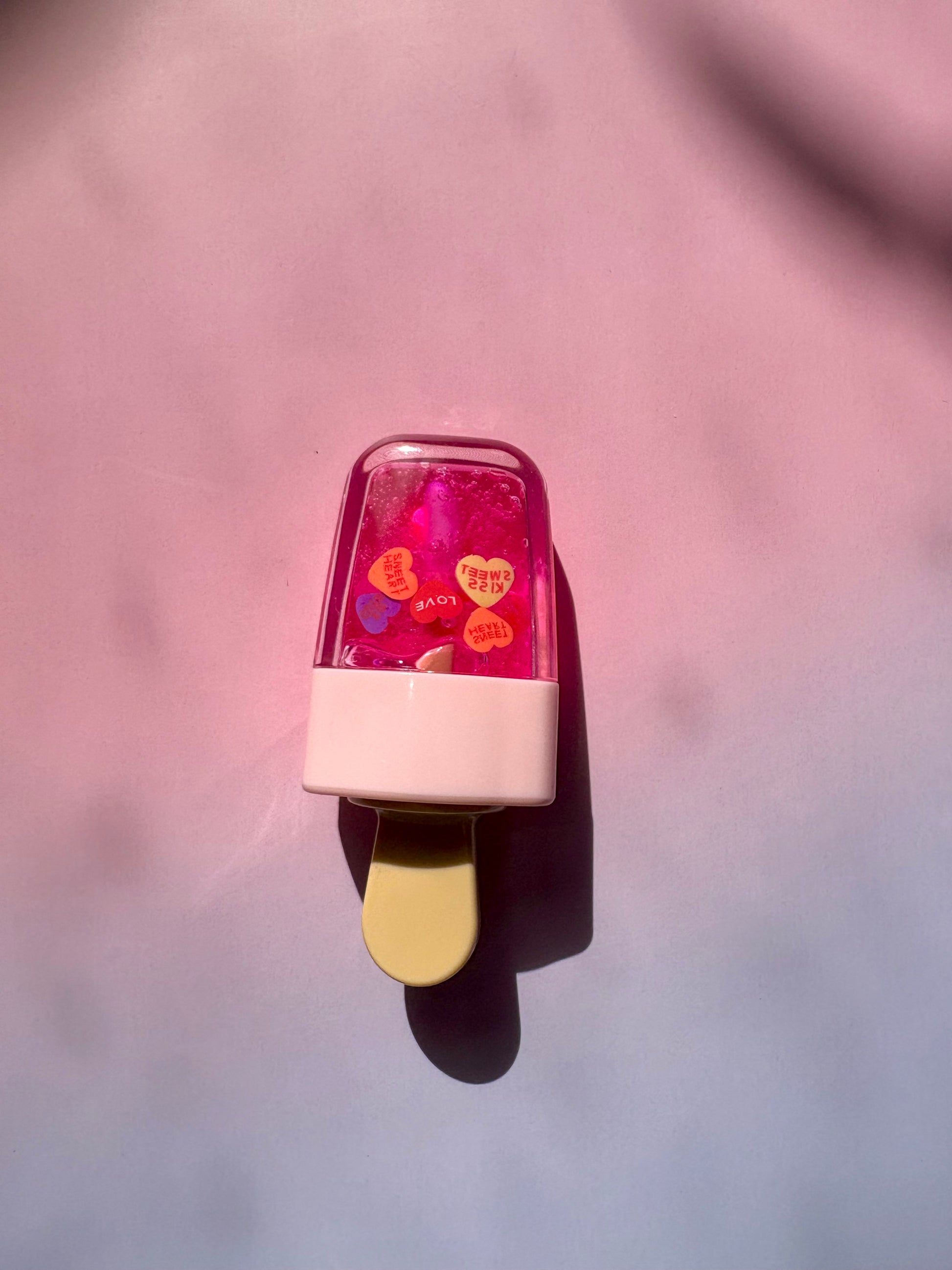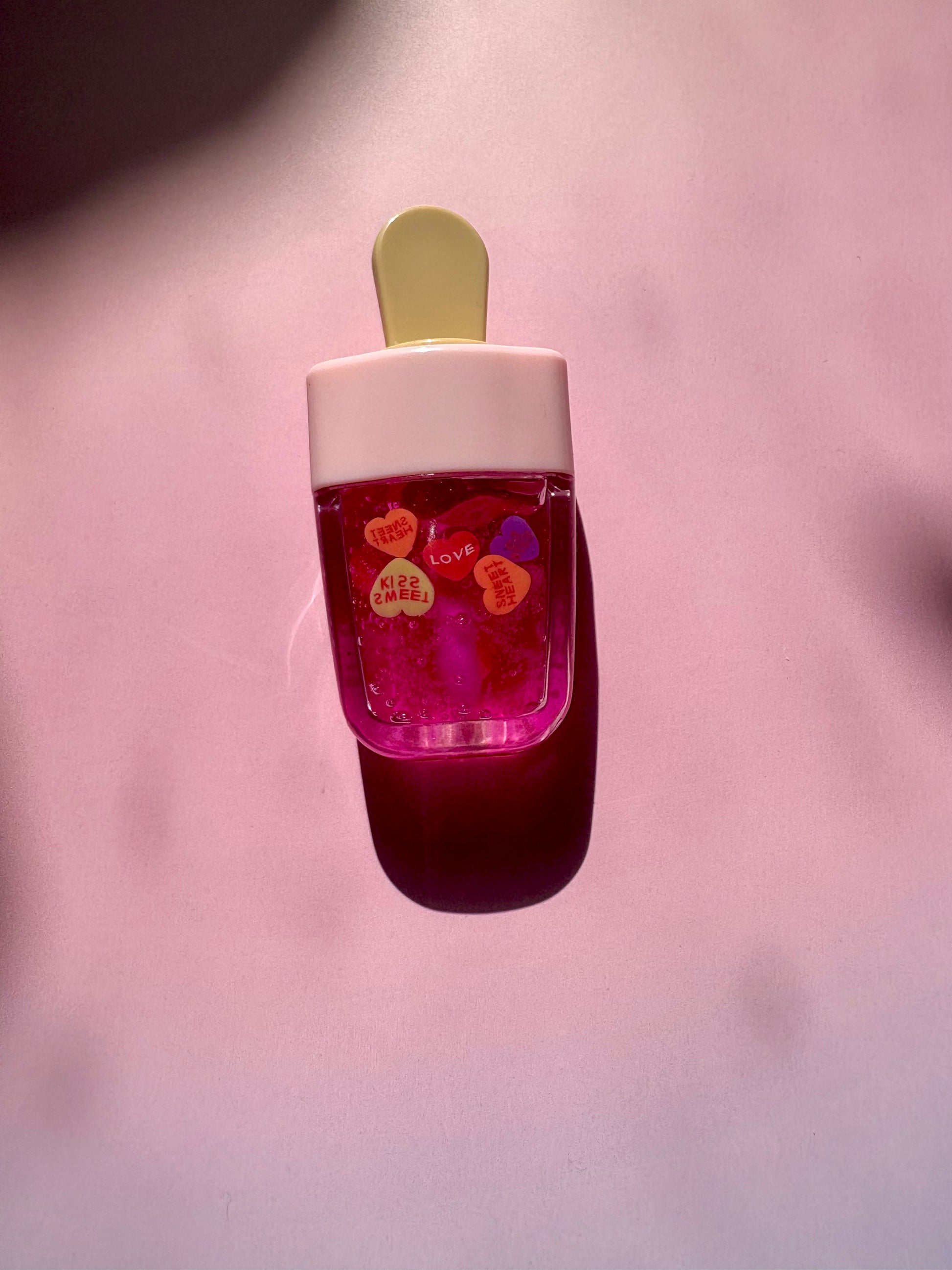 Sweet, juicy, and oh-so-kawaii 🍑✨ — this popsicle jar lip gloss is scented with peach essential oil for the yummiest vibe ever! The gloss looks like a stronger pink in the jar, but still goes on clear with a soft pink tint you can see through. Hydrating, glossy, and playful, it’s like a little peachy popsicle for your lips!